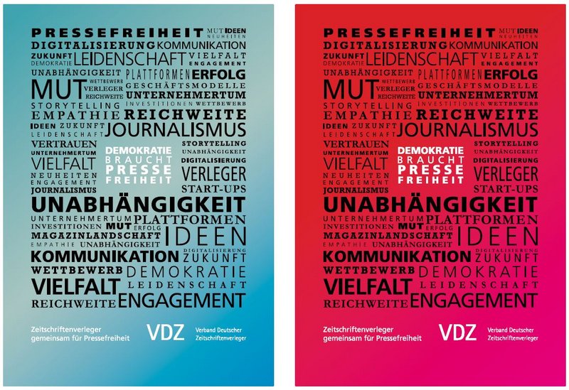 Im Einsatz für Pressefreiheit als Grundlage einer demokratischen, pluralistischen Gesellschaft, hat der Verband Deutscher Zeitschriftenverleger (VDZ) aktuell das vierte Motiv der im Januar 2015 gestarteten Pressefreiheitskampagne veröffentlicht. Das neue Motiv stellt "Demokratie braucht Pressefreiheit" in den Mittelpunkt einer der für die Kampagne typischen Wordcloud. Bereits Anfang des Jahres stieß die Kampagne auf große Resonanz. "Die Unabhängigkeit in der Berichterstattung ist Kern der Pressefreiheit. Ihre Grenzen findet sie durch die bestehenden Gesetze und die journalistische Ethik, die im Pressekodex verankert ist, nicht in Einschüchterungsversuchen oder gewaltsamen Übergriffen!", so Stephan Scherzer, Hauptgeschäftsführer des VDZ.