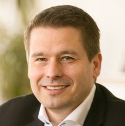 Michael Schrader, COO beim VNR Verlag für die Deutsche Wirtschaft, steht als Referent auf der Bühne bei den B2B Media Days.
