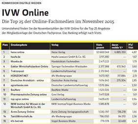 Die monatlich zusammengestellte Tabelle gibt einen Überblick über die Top 25-Onlineangebote deutscher Fachmedienverlage (nur Mitgliedsverlage).