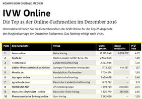 IVW Online: Starker Dezember im Vergleich zum Vorjahr