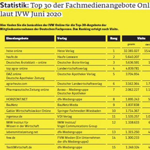 IVW Online: Fachmedienangebote im Juni