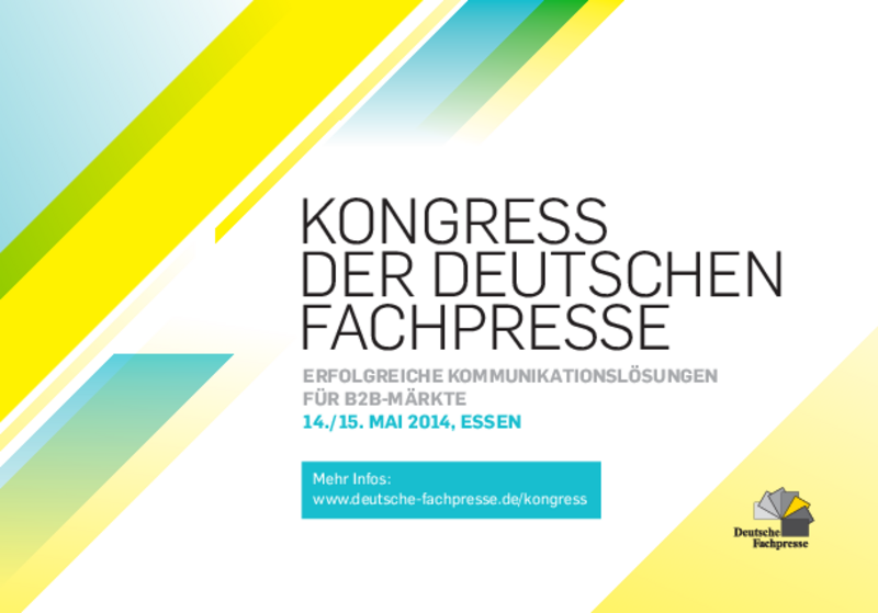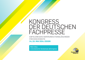 Unter dem Motto "Erfolgreiche Kommunikationslösungen für B2B-Märkte" nimmt der diesjährige Kongress der Deutschen Fachpresse aktuelle Marktentwicklungen unter die Lupe und zeigt, wie Fachmedienanbieter auf den Branchenwandel reagieren. Redner am ersten Tag sind beispielsweise Adrian Barrick (United Business Media, UK), Rolf-Dieter Lafrenz (Schickler Managementberatung) sowie Claudia Michalski (Verlagsgruppe Handelsblatt). Am Abend werden die Fachmedien des Jahres und Fachjournalisten des Jahres prämiert. Am zweiten Tag plädiert Andreas Winiarski (Rocket Internet) für ein Aufbrechen tradierter Denkmuster. Sein spezielles Verständnis von Innovationskultur zeigt sich geprägt durch seine Erfahrungen bei dem global agierenden Internet-Inkubator. Parallele Sessions und Workshops ergänzen das Kongressprogramm. Der Fachpresse-Kongress findet am 14. und 15. Mai im Q2 des ThyssenKrupp-Quartiers in Essen statt. Melden Sie sich jetzt an uns seien Sie beim Branchen-Event des Jahres dabei! Detaillierte Informationen zu Programm und Anmeldung finden Sie <link http: www.deutsche-fachpresse.de kongress external-link-new-window external link in new>hier.